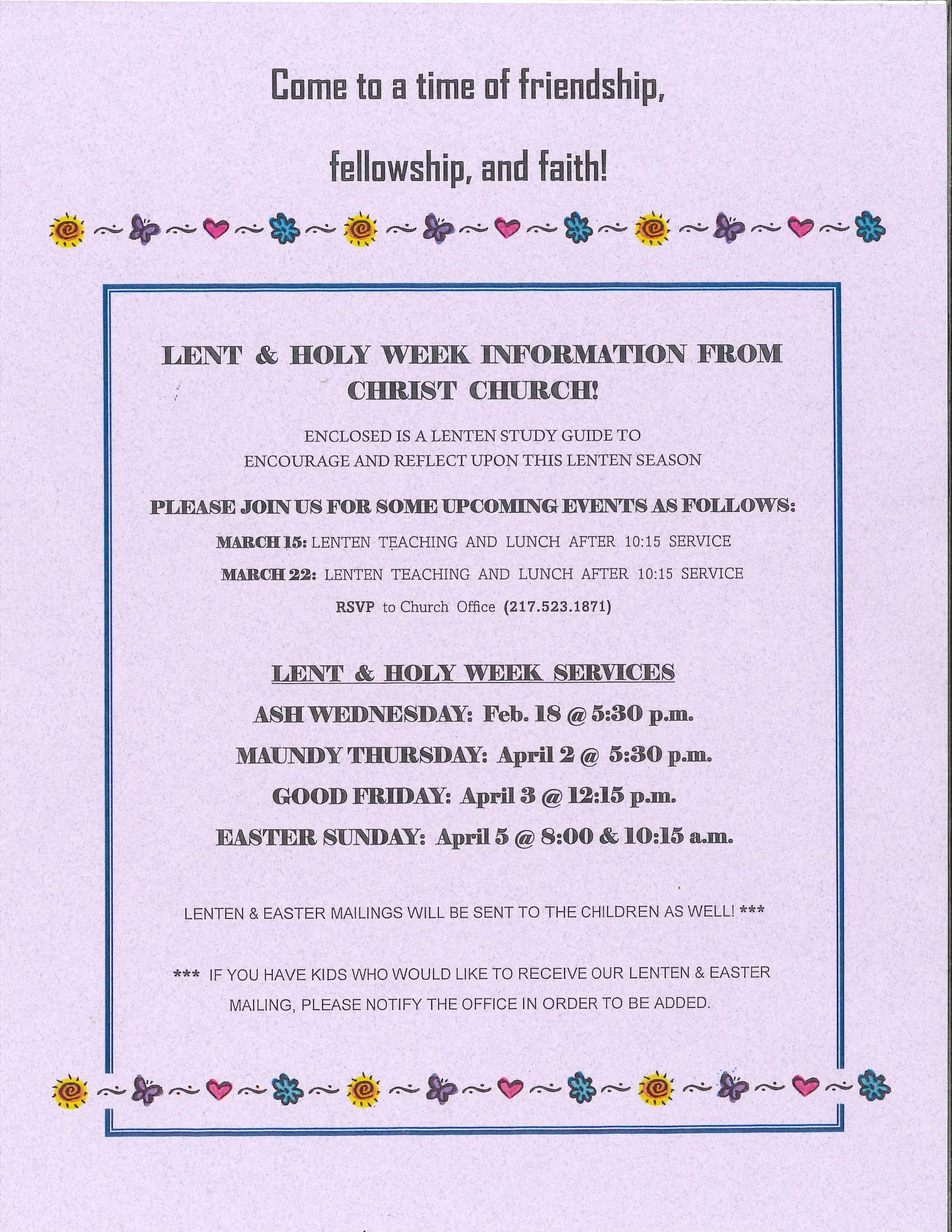 2026 Lent & Holy Week Information